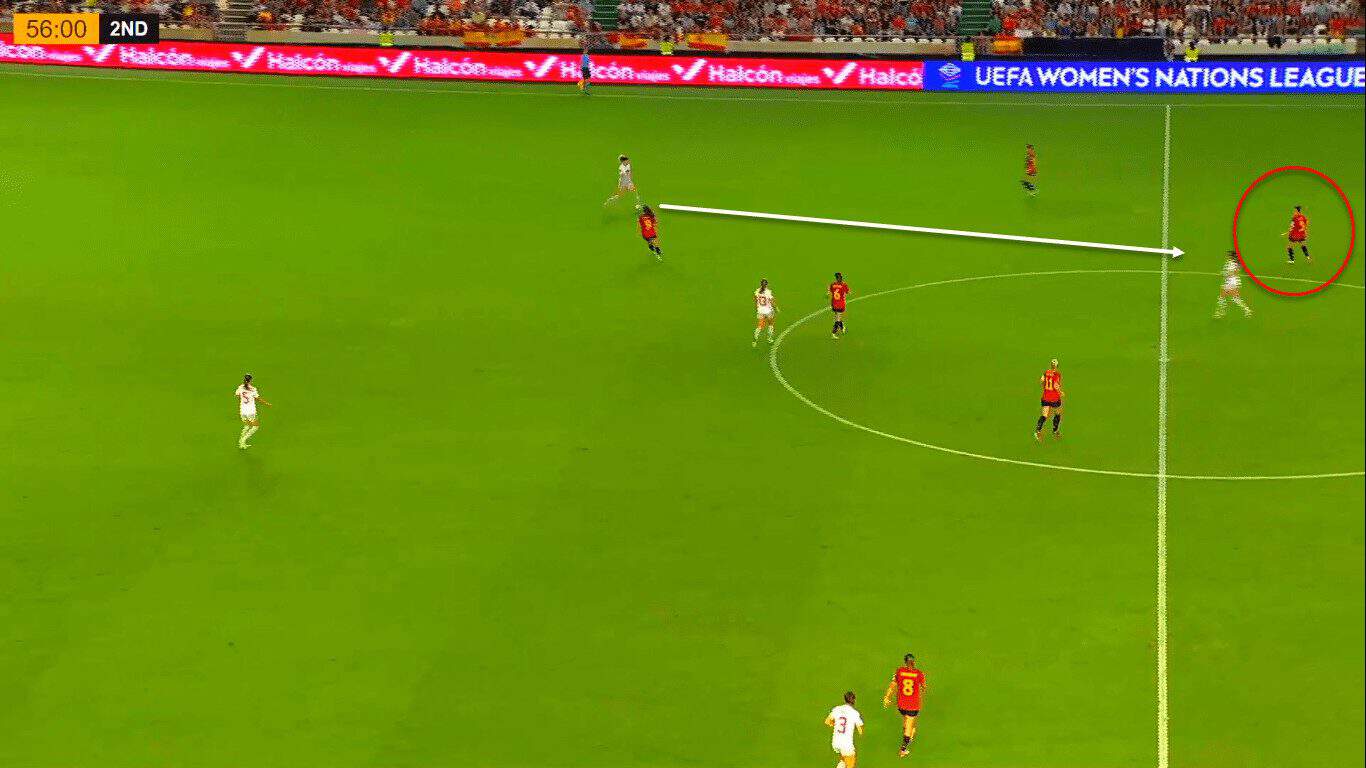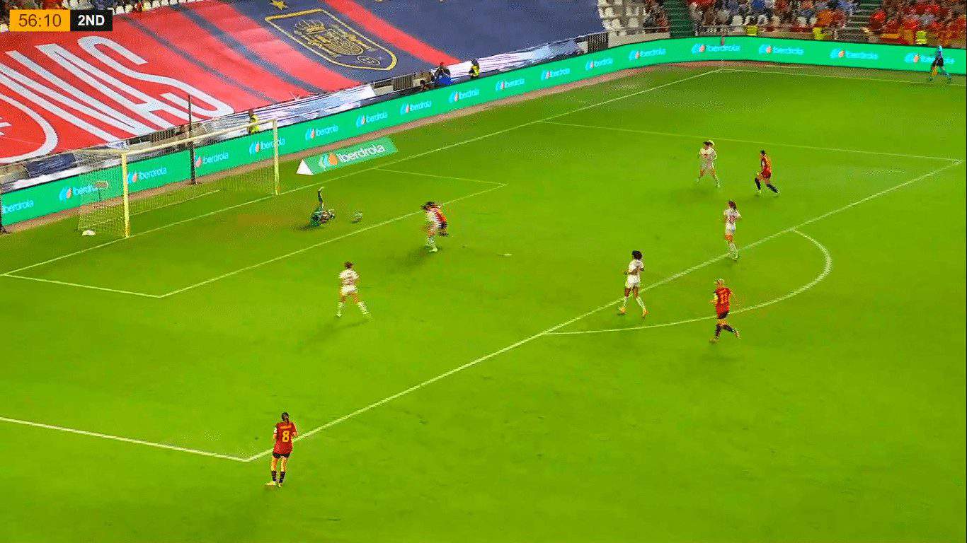 This goal was conceded due to a wrong pass from the goalkeeper, Elvira Herzog. The intention was to pass the ball to Noelle Maritz, but Barcelona’s Mariona Caldentey was aware of Herzog’s obvious passing choice and could intercept the pass. Therefore, a lot more attention is needed in this regard, and improving the team’s overall passing accuracy in their own half would be a helpful solution as well.