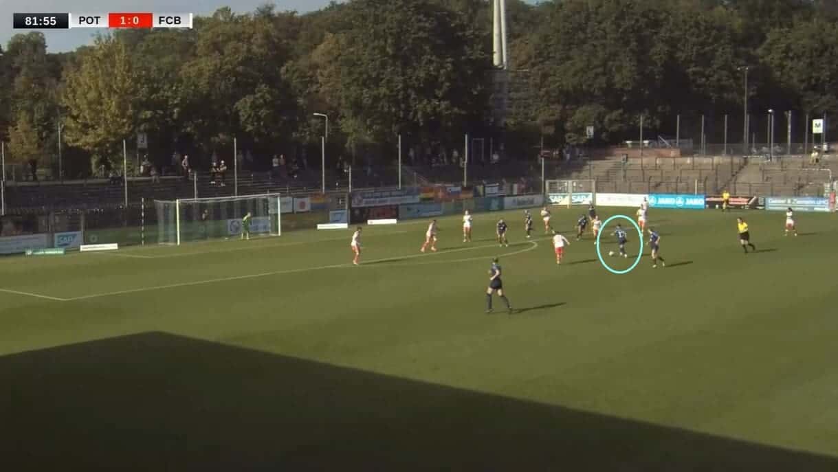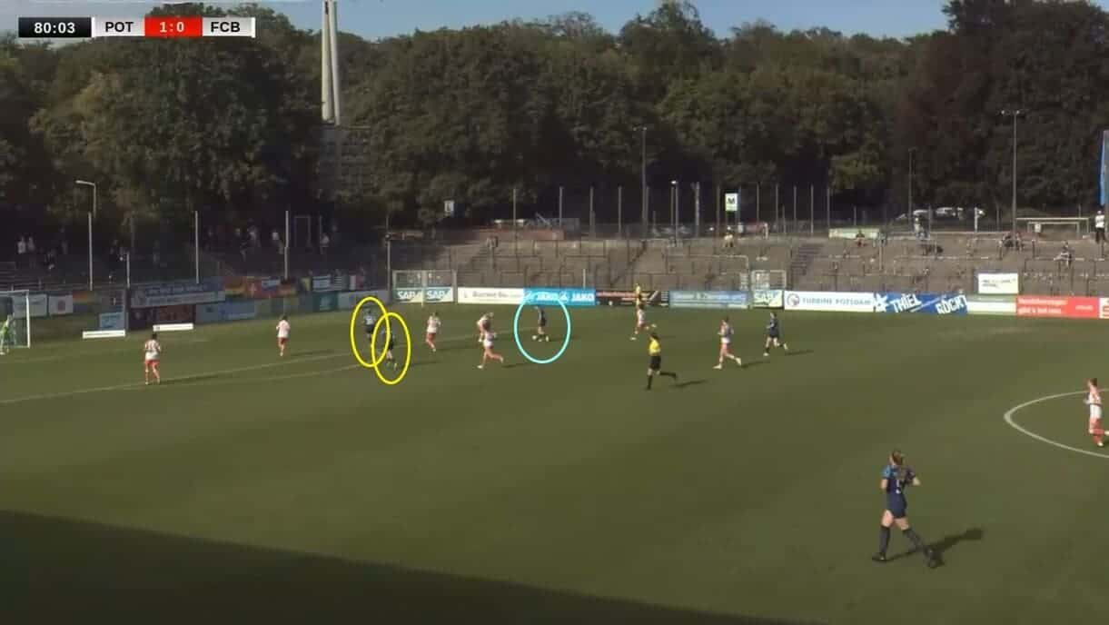 In this case, Schwalm didn’t manage to make the most of her chance, but her ability to drift infield again highlights how a lot of what Potsdam do well comes down to the freedom that their players enjoy and the reliance that the team has on individual members of the squad demonstrating in-game intelligence and recognising where they can have an impact on their play.