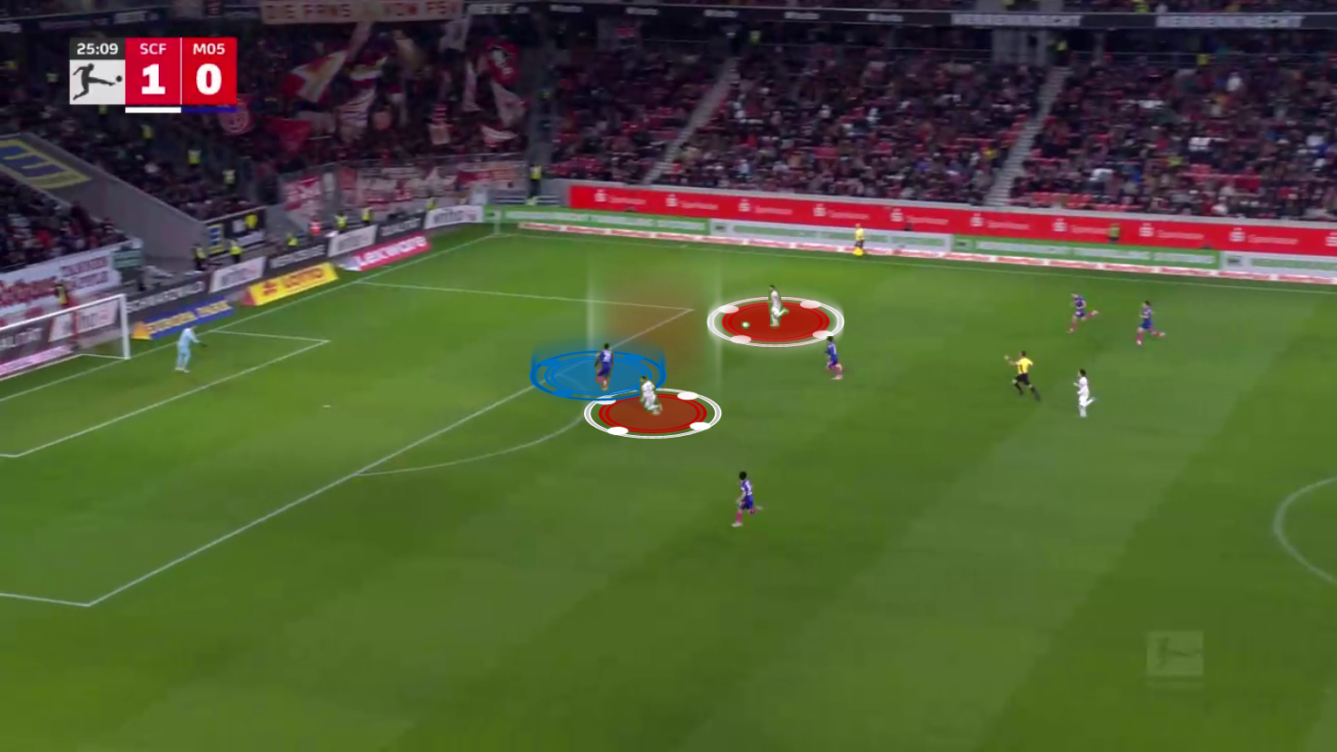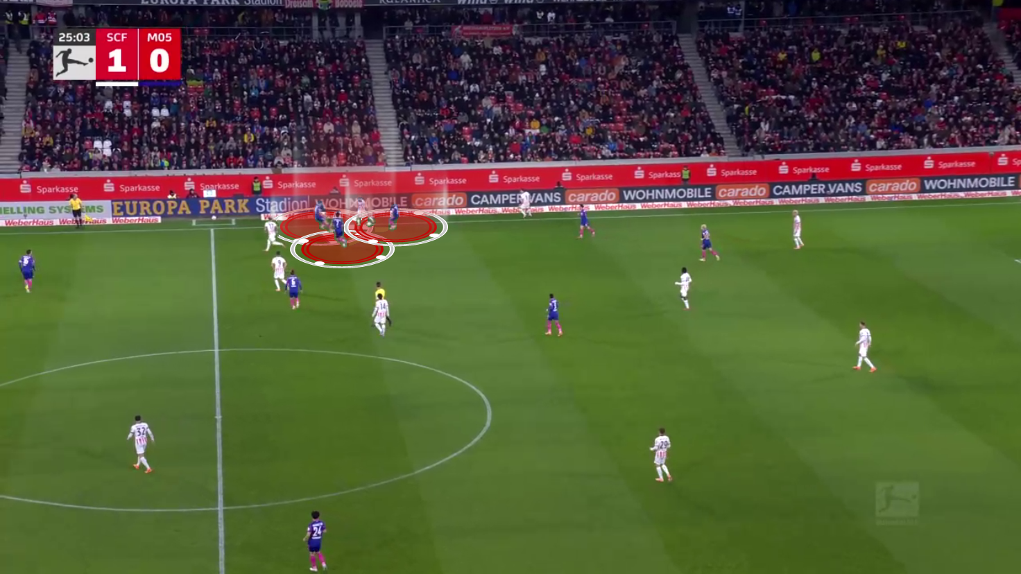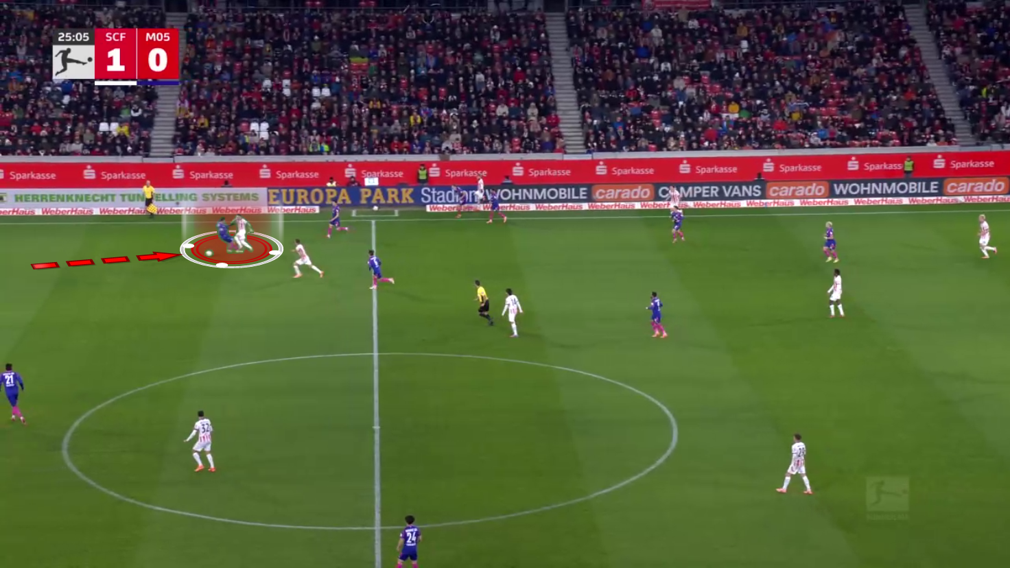 There, three players were ready to press the Freiburg player, but they, once again, failed to actually make a tackle, and now they really started to struggle.