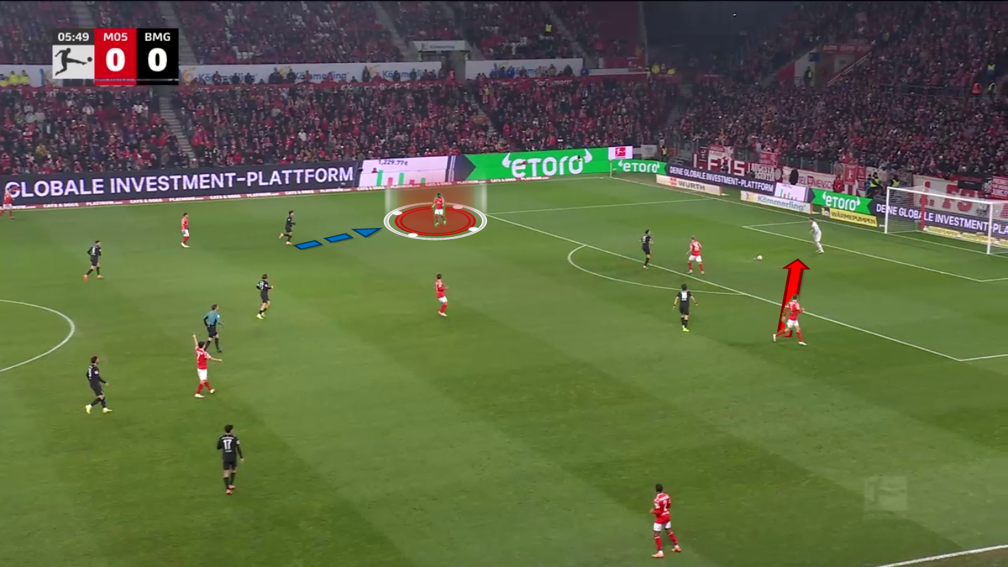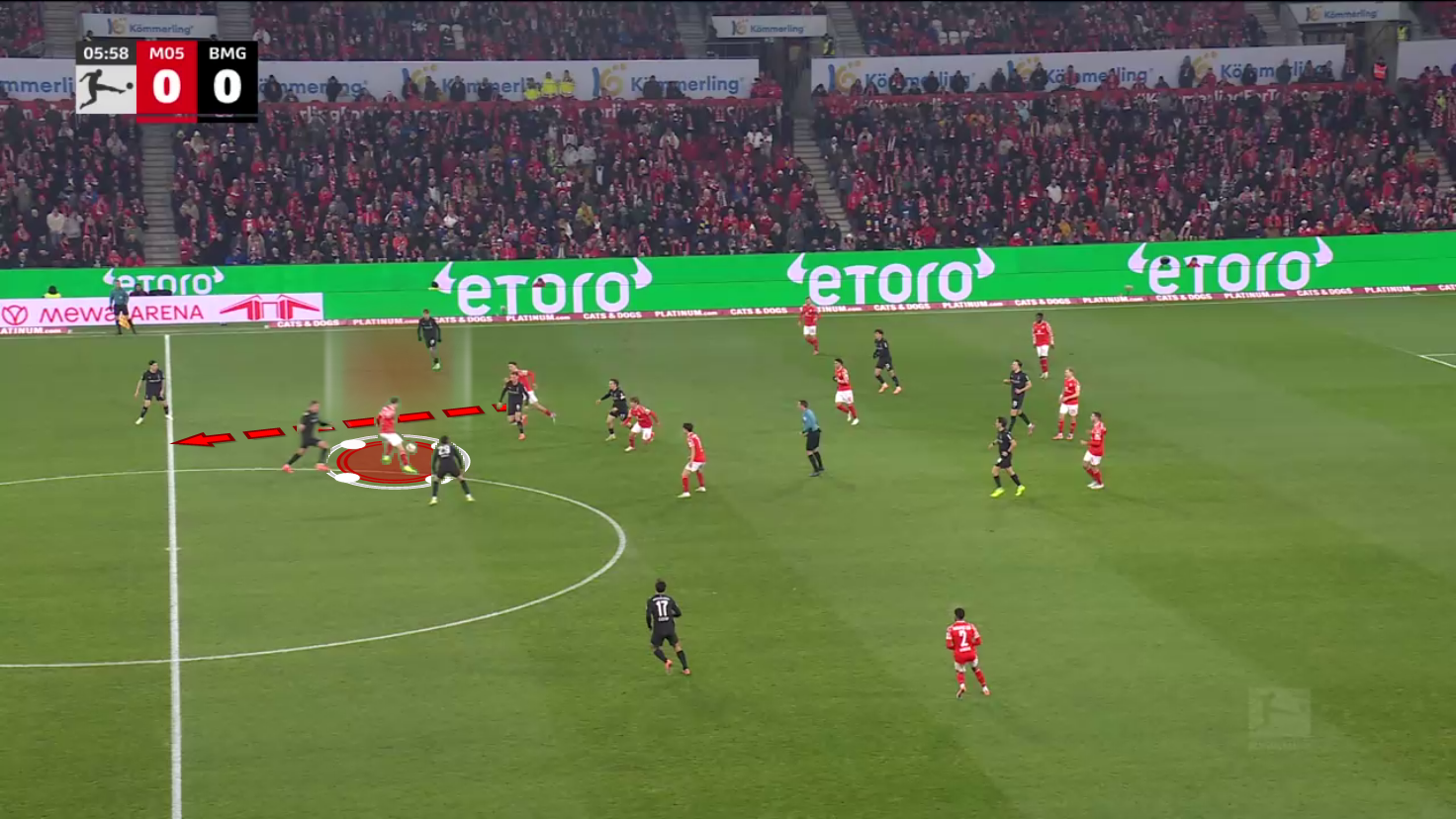 As we can see, Mainz plays a very man-oriented style in their attacking press and tries to put pressure on the build-up as early as possible.