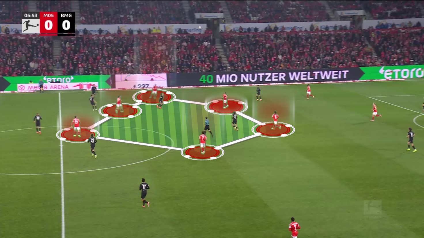 Especially in the middle and their own third, Mainz has huge problems winning their duels and getting their physicality on the pitch.