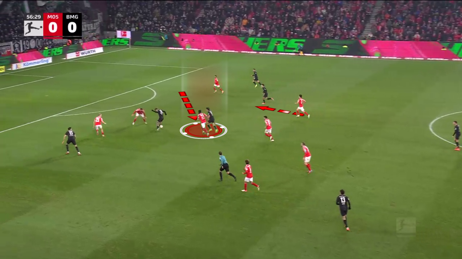 Mainz actually managed to recover rather well and forced a pass towards the sideline.