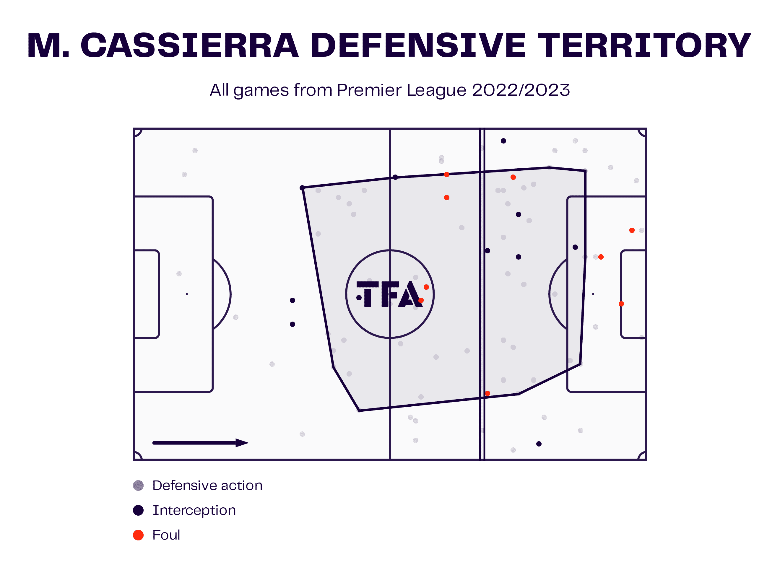 Cassierra’s defensive territory covers the middle and final third but stops just inside the opposition’s penalty area.