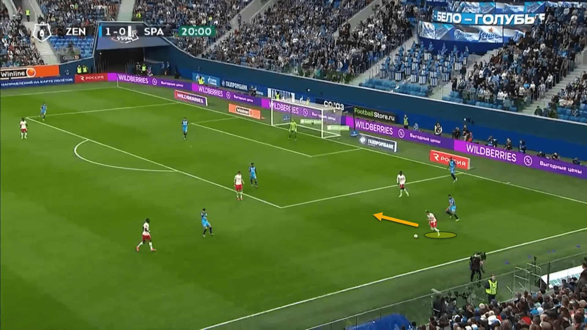 From here, the opposition have one less defender in the box and Zenit can exploit this with an accurate cross.